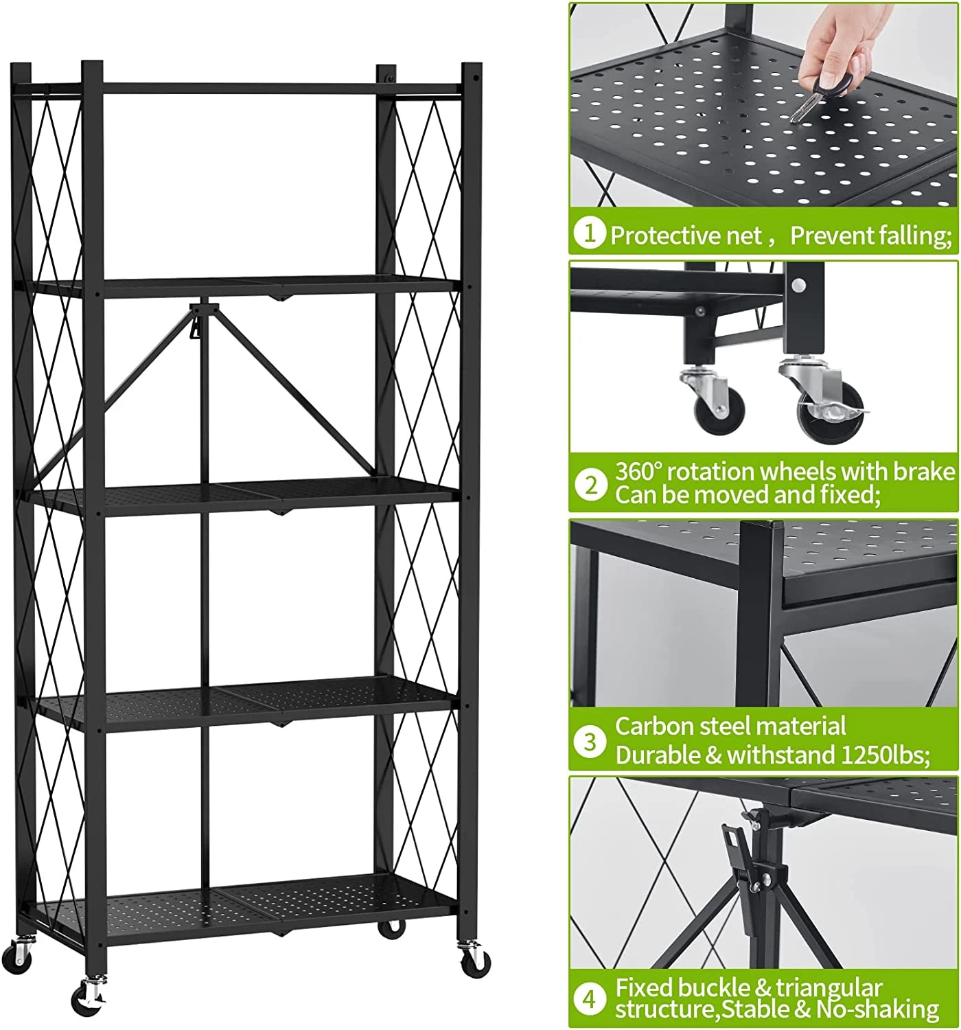 Heavy Duty Metal Wire 5 Layer Multifunctional Foldable Floor Standing Storage Rack