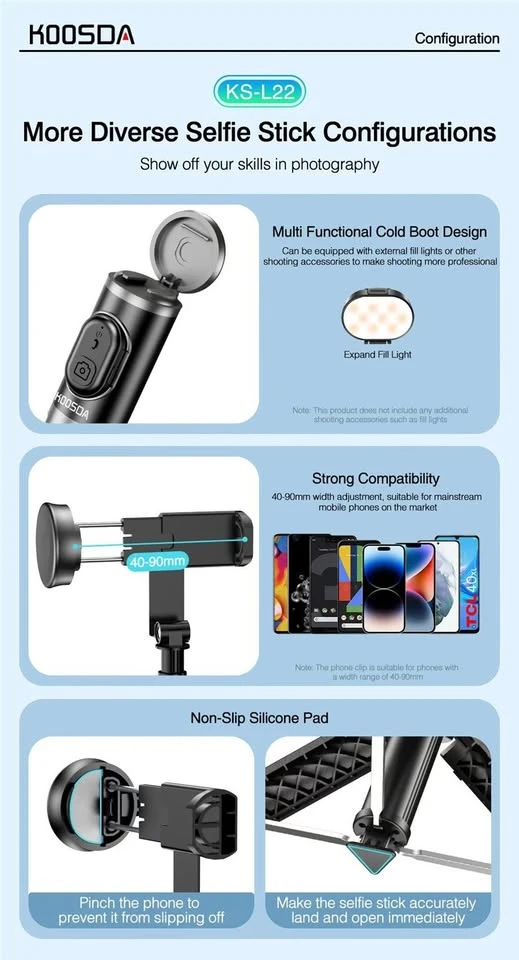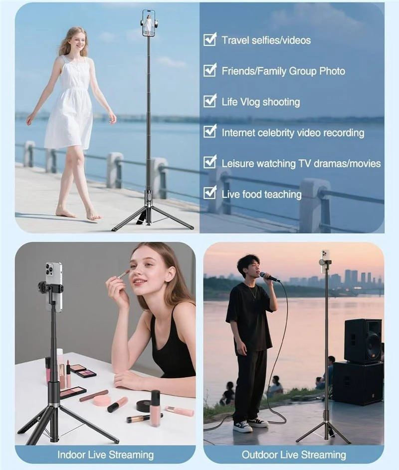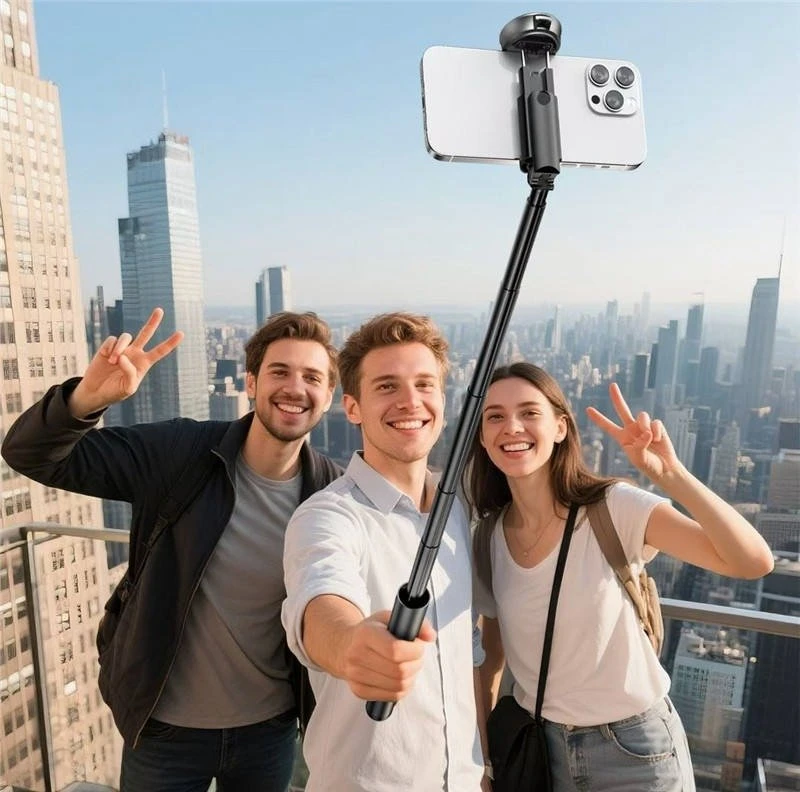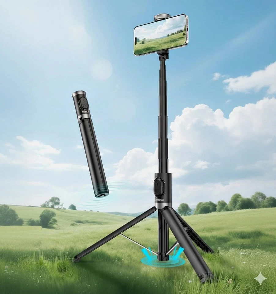 2-in-1 Selfie Stick + Tripod – Use handheld for selfies or convert into a tripod for stable shots.