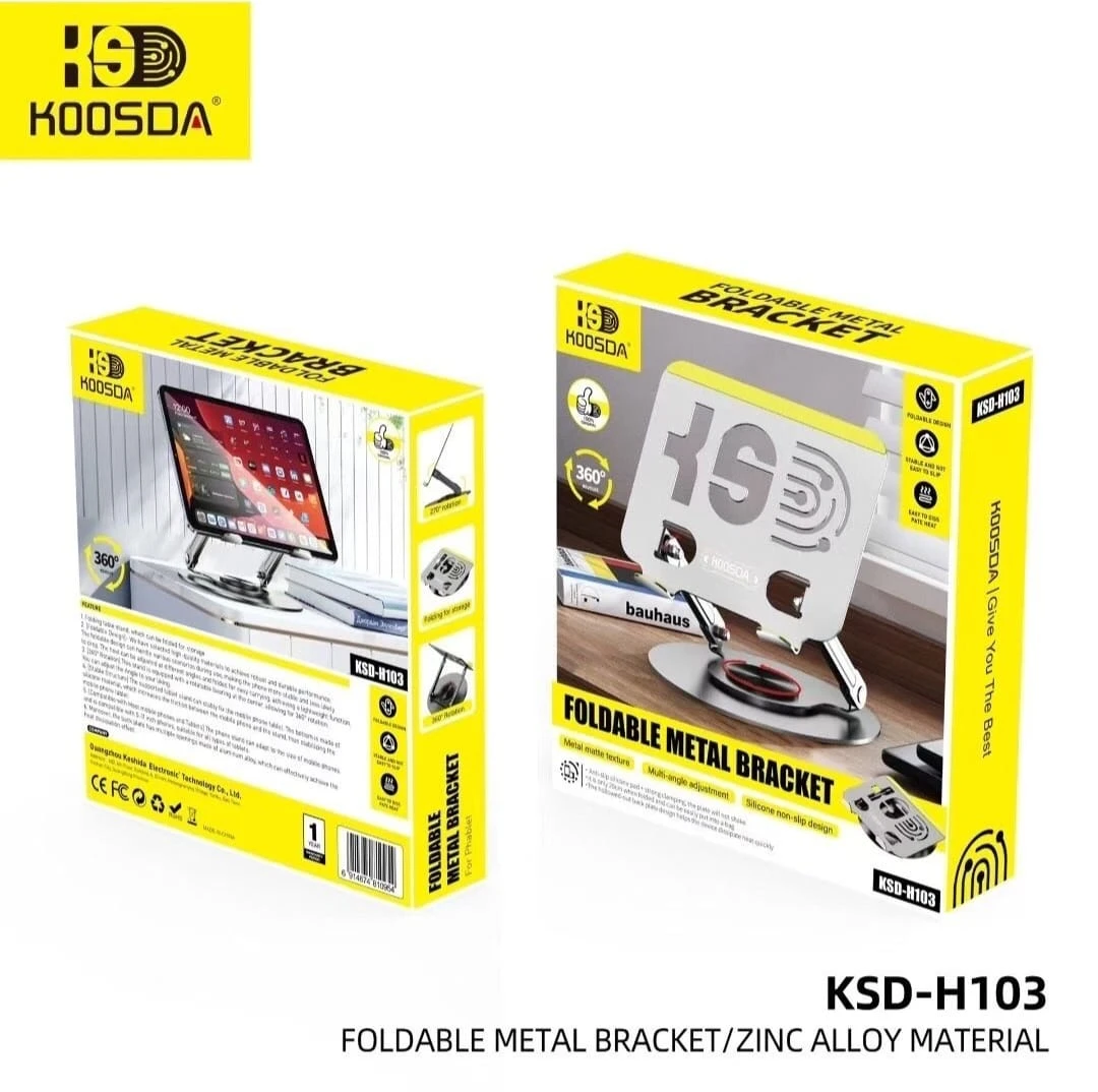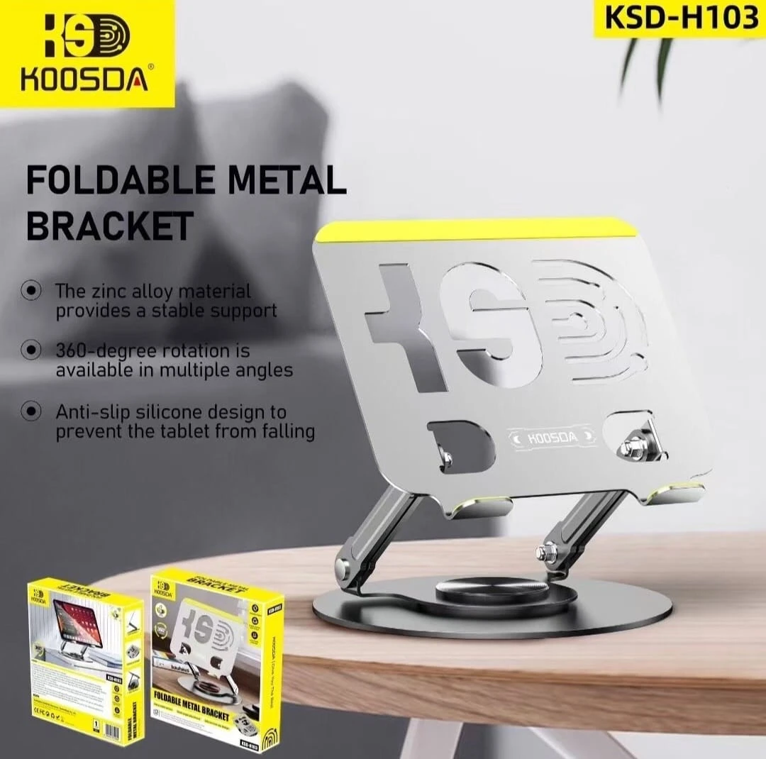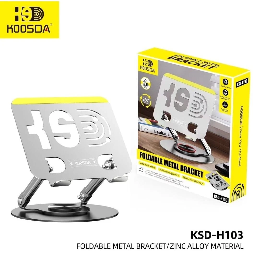 KOOSDA KSD-H103 Foldable Metal Bracket | 360° Rotating Zinc Alloy Adjustable Stand for Laptop/Tablet
