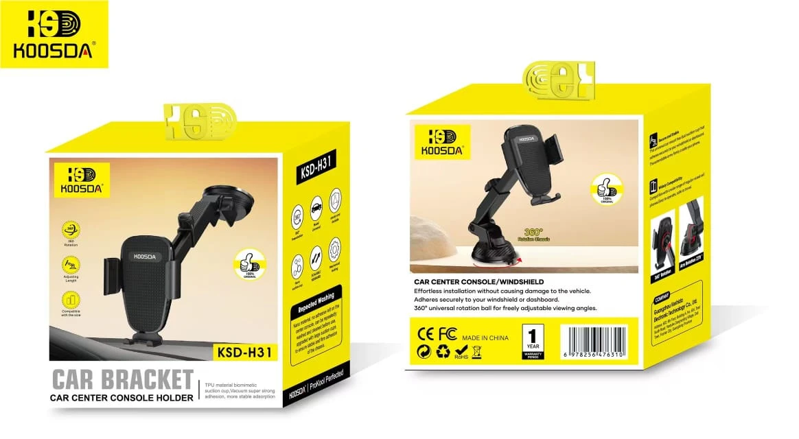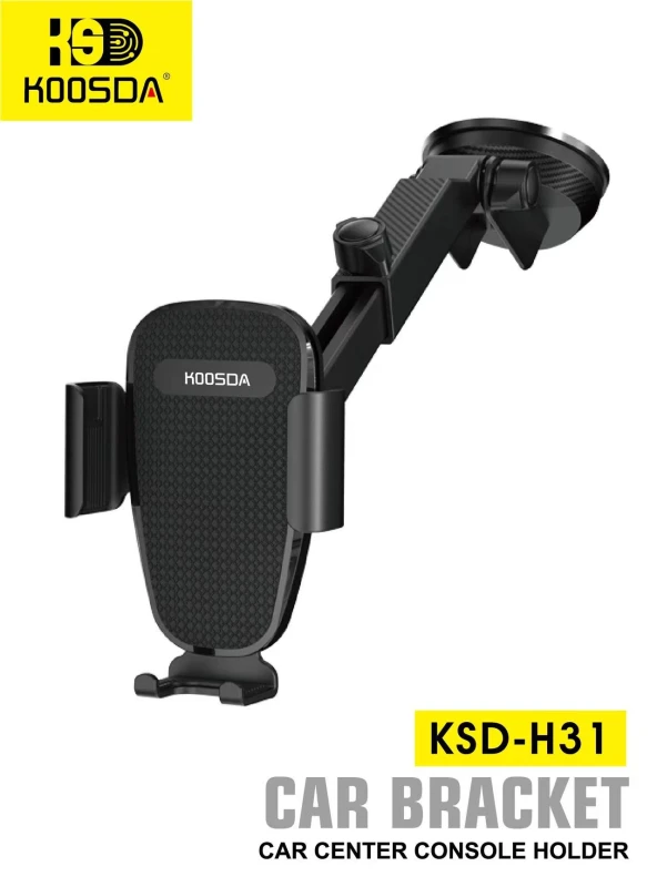 KOOSDA KSD-H31 Car Center Console Holder | Adjustable Arm Phone Mount | TUP Suction Cup for Windshield & Dashboard