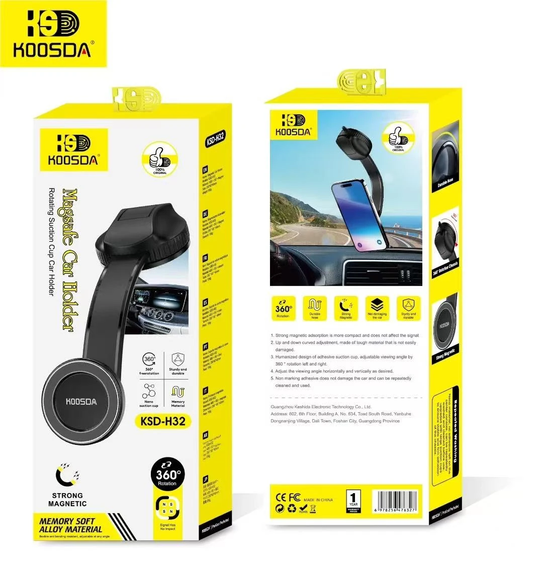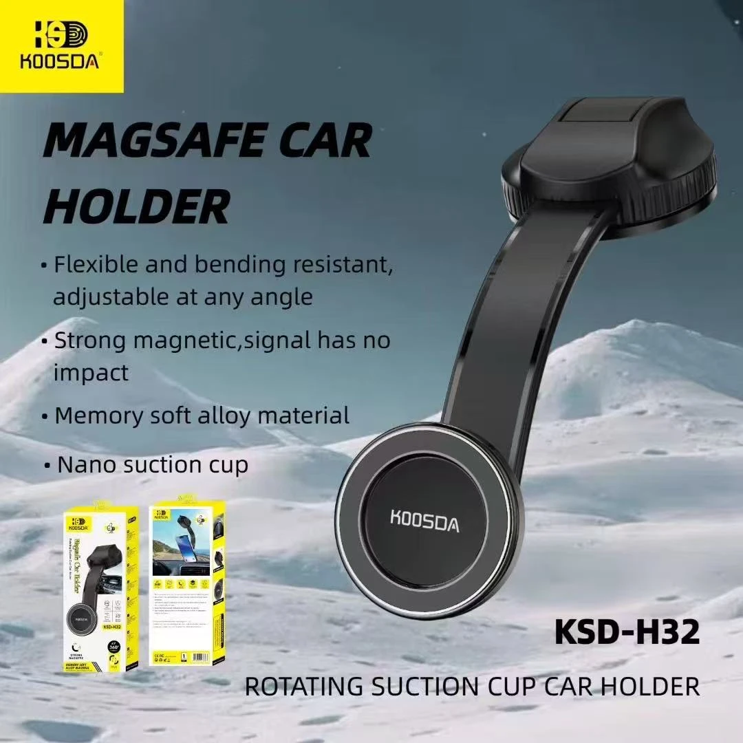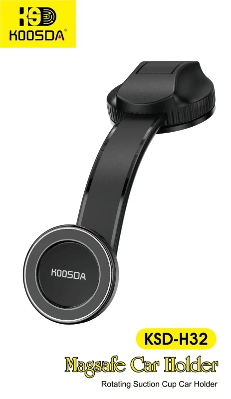 KOOSDA KSD-H32 MagSafe Car Holder | Rotating Suction Cup Dashboard Magnetic Phone Mount | Strong Memory Soft Alloy